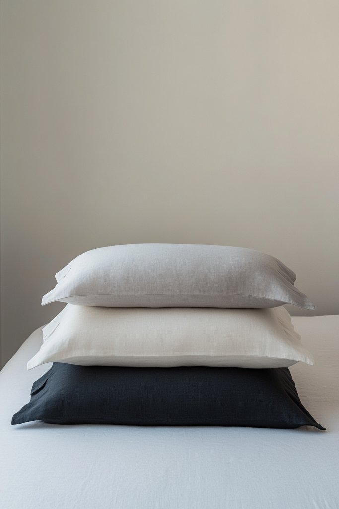 Select light-colored, neutral pillows with simple patterns or textures. Layer them neatly at the head of your bed, keeping the arrangement tidy. Mix in a few textured cushions, such as woven or boucle, to add subtle depth. Keep the bedding minimal, and add a soft, textured throw for warmth. Focus on clean lines and understated elegance.