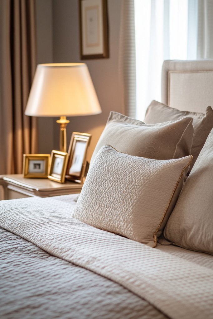 Select bedding in neutral tones with textured finishes—look for linen, waffle weave, or quilted designs. Wash and care for fabrics according to instructions to maintain their texture.
