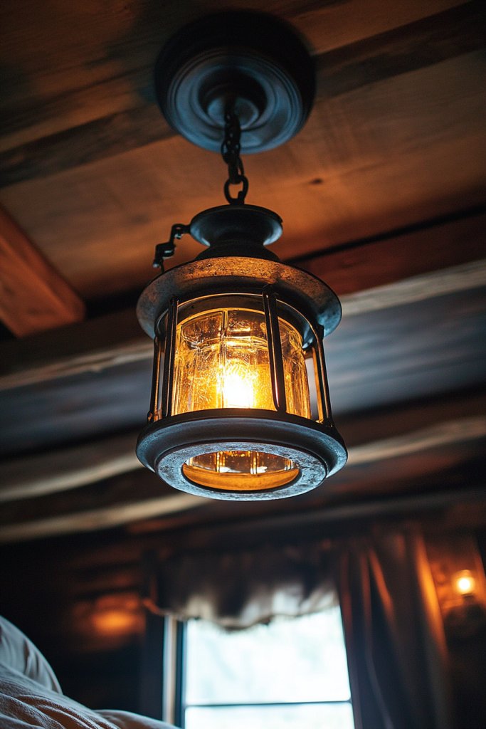 Personal touches like hanging charms or small leather accents can make the lighting uniquely yours. Adding vintage lantern pendant lighting transforms your bedroom into a Western hideaway.