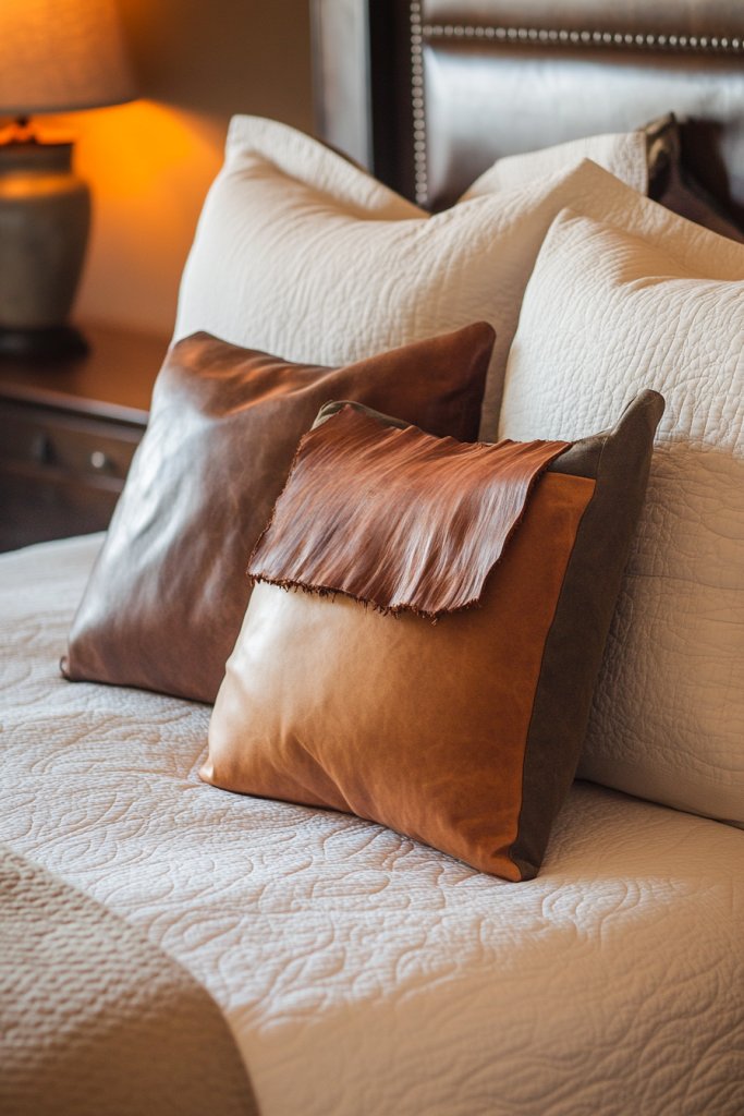 Personal touches like vintage leather tags or small charms make your pillows stand out. Leather and rawhide pillows add a rugged, stylish layer to your bedding ensemble.