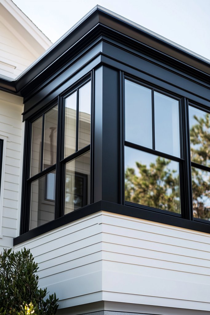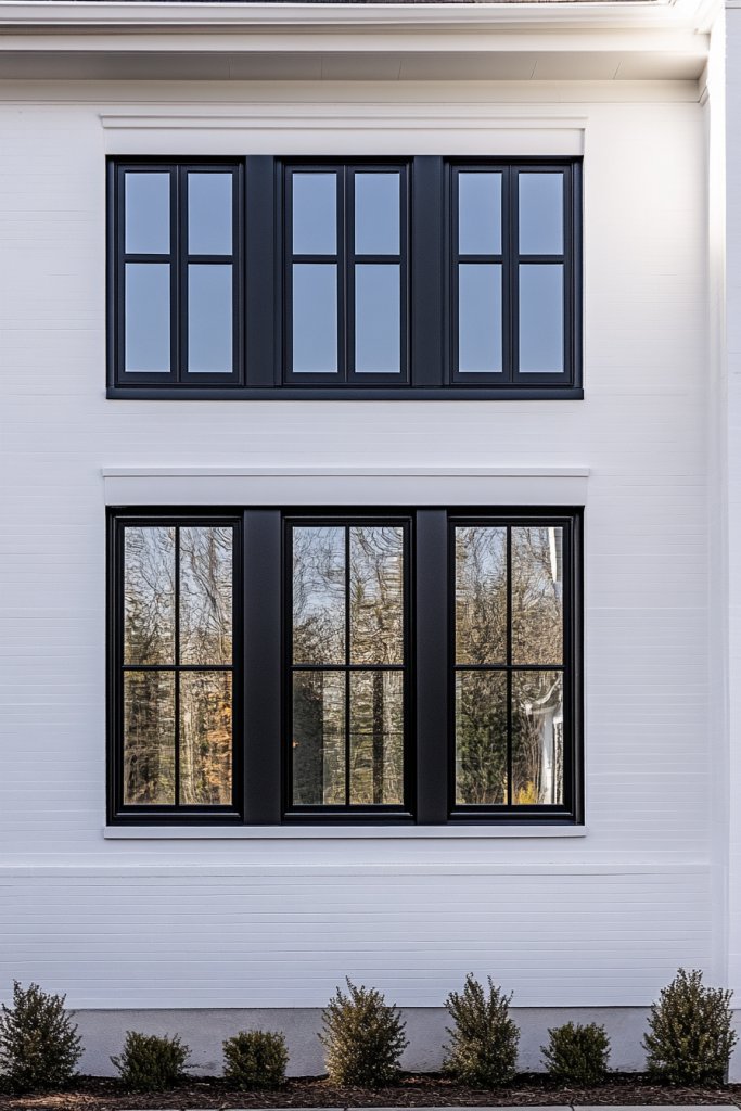 Dreaming of a truly unique window design? Modular black panels allow you to customize patterns, textures, and layouts to create a one-of-a-kind facade. They blend bold contrast with artistic expression, giving your home a distinctive identity. If you crave flexibility and originality, this idea puts you in control.