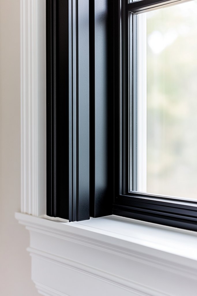 Select high-quality black window frames made from durable materials like aluminum or steel. Install with precise measurements to ensure the interior trim aligns perfectly with the window opening. Inside, add white trim or molding that complements the exterior frame. Seal all joints for weather resistance, and finish with paint or varnish for longevity. Regular maintenance involves cleaning the glass and touch-up painting of the trim.