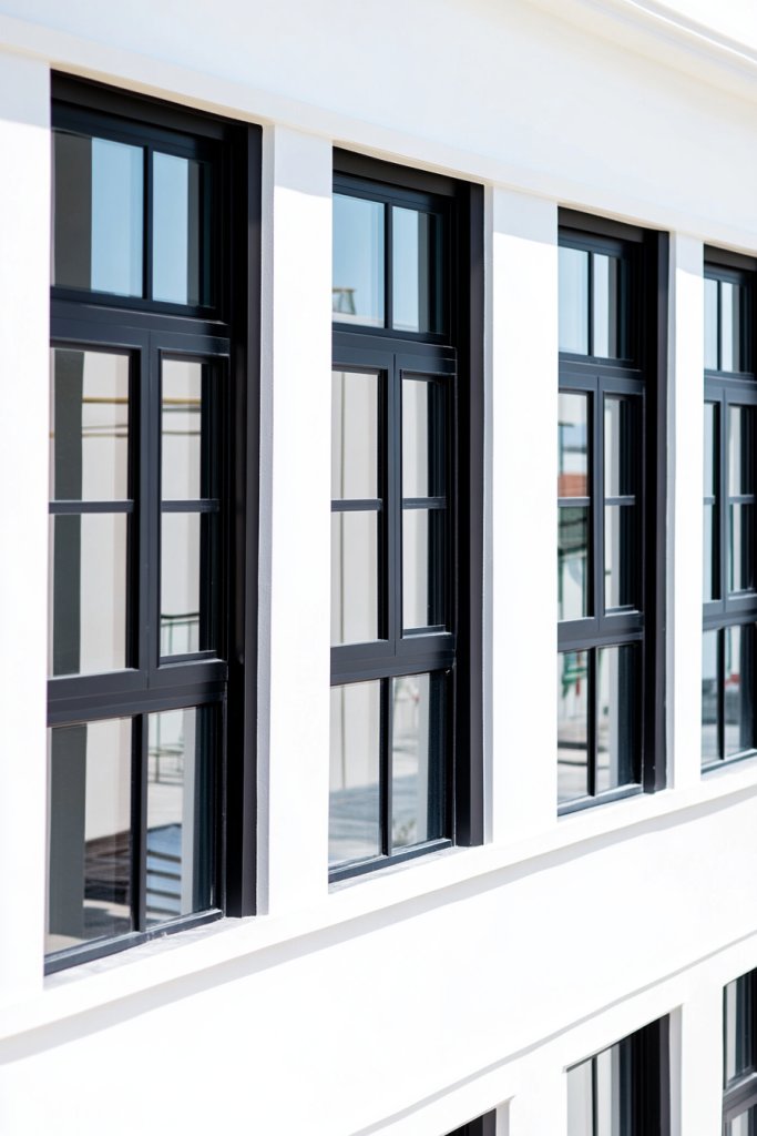 Visualize black grid-like bars dividing large glass panes into smaller sections, reminiscent of classic window styles. These grilles create a layered visual effect that adds depth and interest to the facade. When sunlight filters through, it casts delicate shadows that dance across the white walls, enhancing the nostalgic charm. Inside, they evoke cozy, traditional interiors, bridging old-world elegance with modern simplicity.