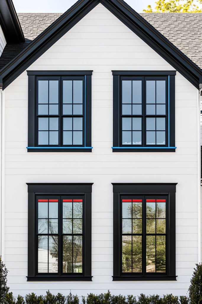 Want to add a playful or personalized touch to your home’s exterior? Black window frames with subtle colored accents create a striking contrast while injecting personality. Whether it’s a splash of red, yellow, or blue, these accents draw attention and make your windows uniquely yours. If you love a bold statement with a fun twist, this idea is perfect.