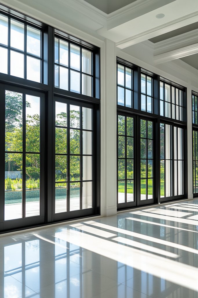 5. Black-Framed Floor-to-Ceiling Windows for Open Views