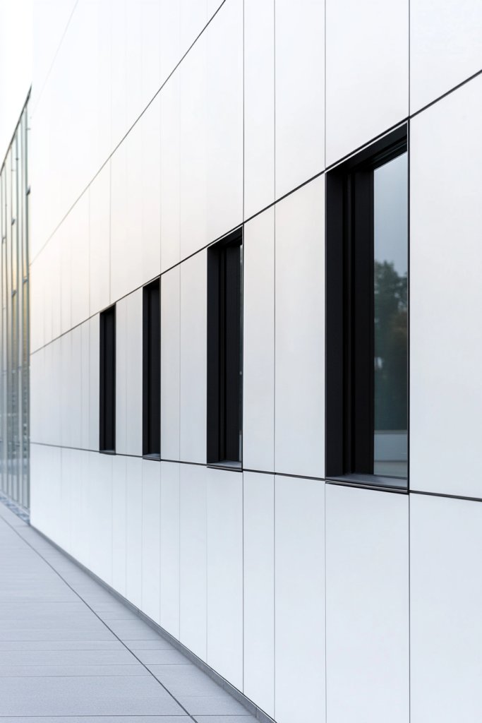 Imagine glossy black glass panels hugging your windows without any visible borders, creating an illusion of floating dark shapes against a pristine white background. The smooth surface reflects ambient light subtly, adding depth and intrigue. From a distance, these inserts look like bold, dark mirrors embedded in the wall, enhancing the house’s architectural integrity with a futuristic vibe. The contrast is striking yet refined, making your home stand out.