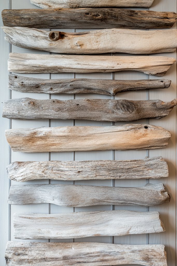 If your space feels too polished or sterile, this look adds warmth and a touch of the coast. Picture pieces of driftwood, with their knotted, textured surfaces, arranged in a natural, unrefined pattern.