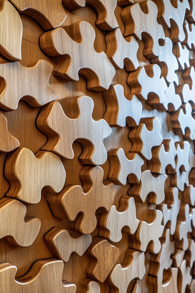 Bored with traditional wall treatments? Want something that truly stands out and sparks conversation? Interlocking geometric wood puzzle designs bring a modern, artistic edge to any room. They add visual intrigue and a sense of craftsmanship that elevates your interior game.