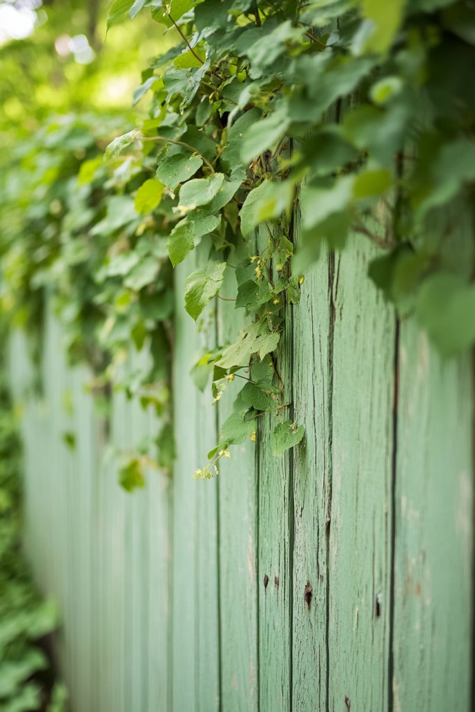 10. Green-Tinted Wood Fence with Climbing Vines (Optional)