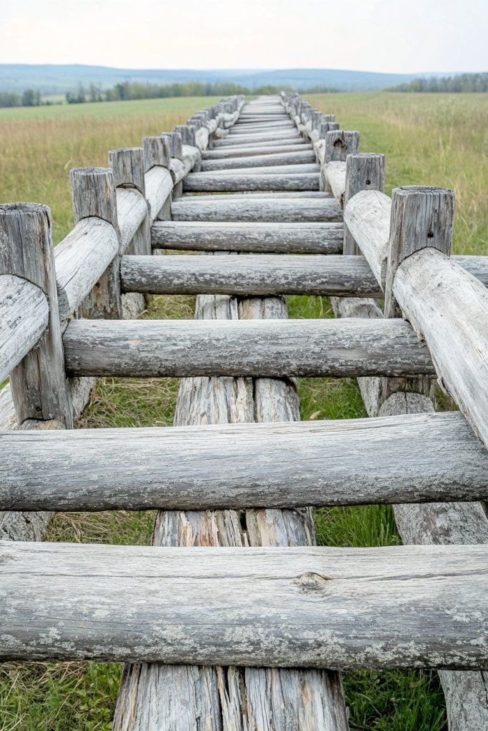 Picture rough-hewn wooden rails stacked in a zigzag pattern, with each piece showing signs of age—faded paint, knots, and natural splits. The weathered surface adds character, making it look like it’s been part of your landscape for decades. Sunlight filters through the gaps, casting shifting shadows that change with the seasons. The overall effect is relaxed, inviting, and effortlessly charming.