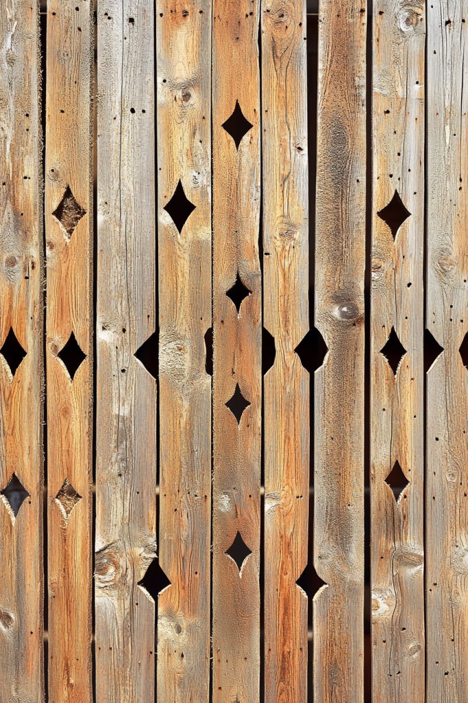 Experiment with different wood stains or leave the wood natural for maximum reclaimed charm. Adjust the spacing and size of the diamonds to control privacy and airflow. Incorporate decorative hardware or paint accents within the pattern for a personalized touch. This design works well for both small and large yards, with scalability based on your privacy needs.