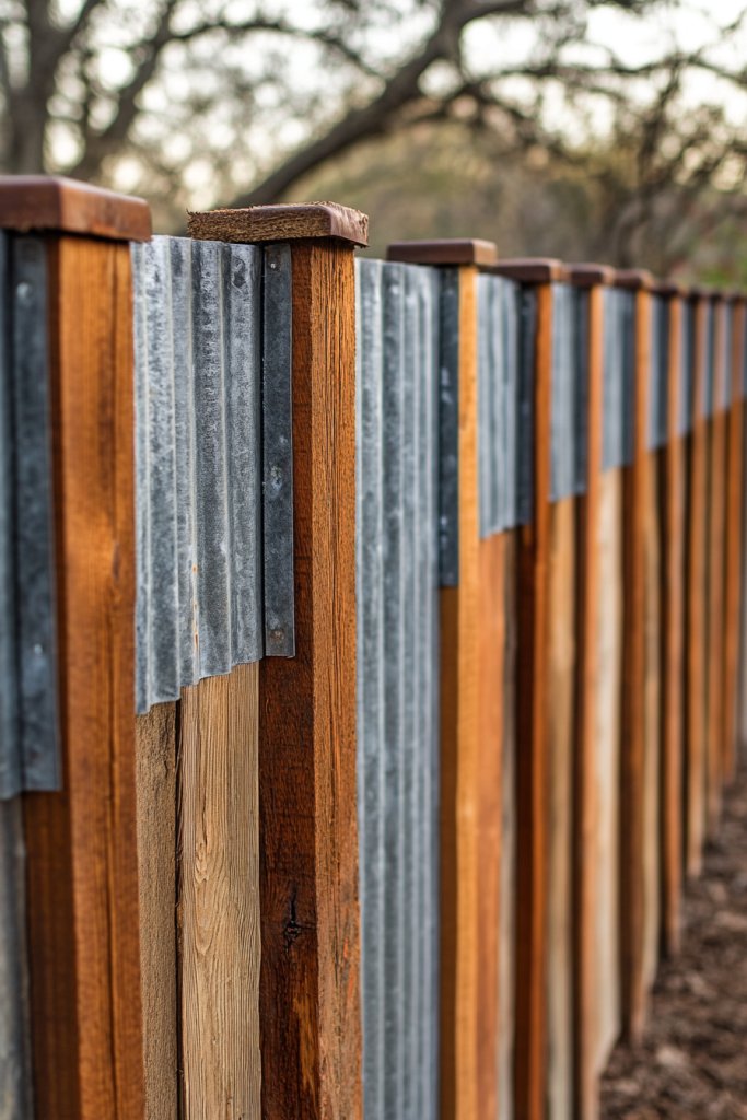 8. Corrugated Metal and Reclaimed Wood Hybrid Fence